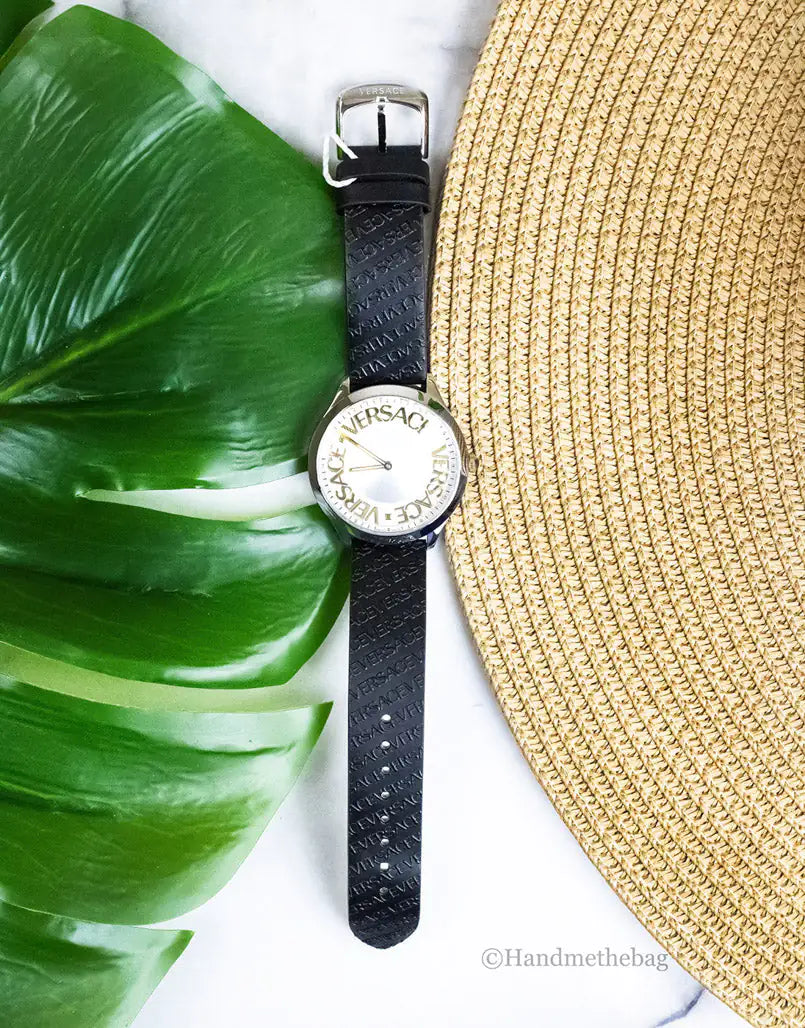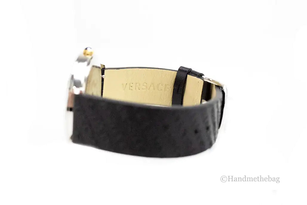 Versace 38mm Silver Logo Halo Dial Embossed Leather Watch